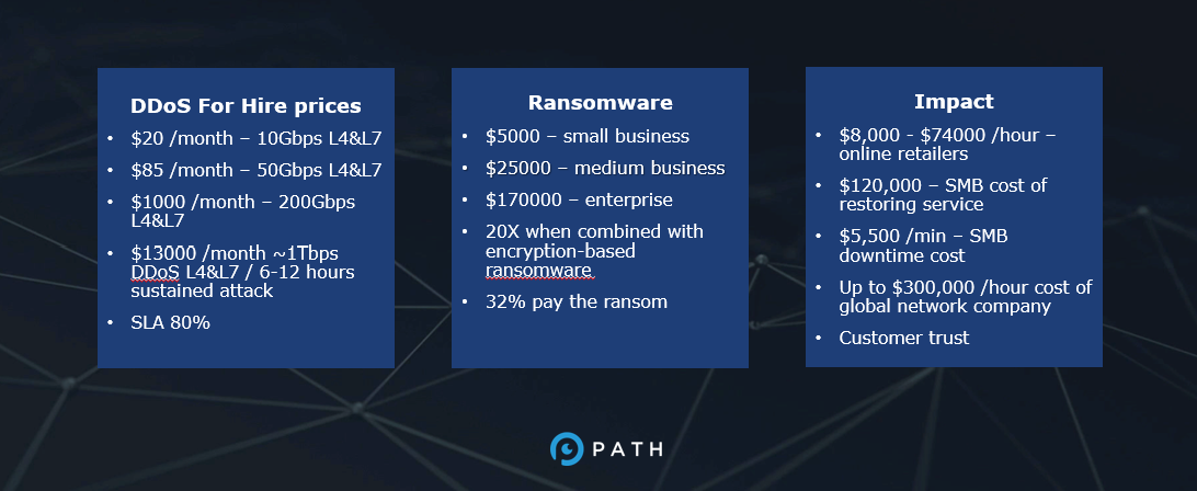 Cybercriminals are always looking for more effective and, of course, profitable attack vectors to pursue. Hybrid ransomware approaches involving victim’s data encryption and DDoS are near the top of the list. By staying informed about these evolving threats and investing in technologies such as Path DDoS security to defend against them you have a chance in protecting your company and potentially saving money that otherwise would be spent fighting the attacks afterward.